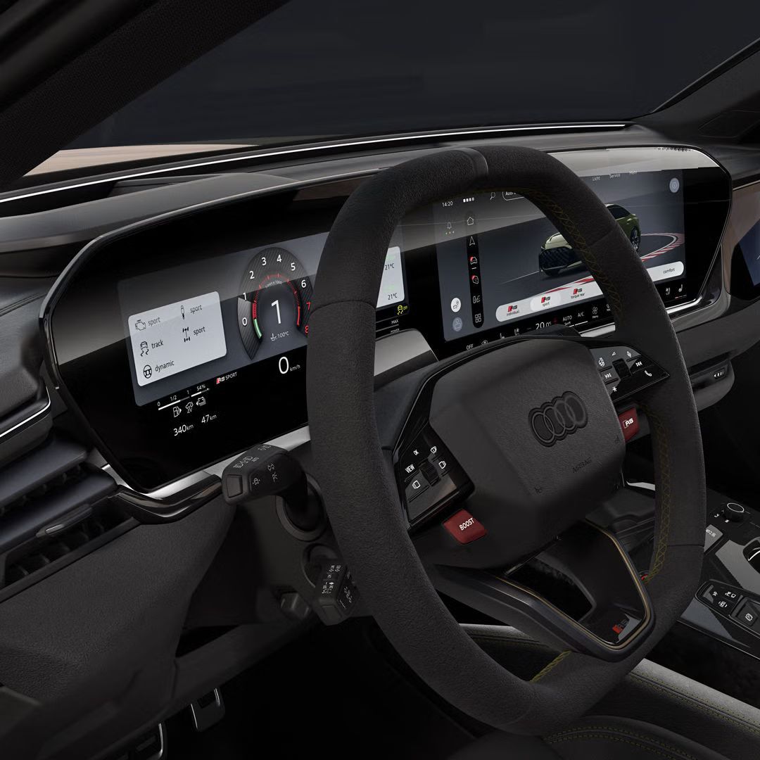 Wählen Sie zwischen vier RS-Interieurpaketen⁷, um Ihrer Audi RS 5 Limousine² eine maßgeschneiderte Erscheinung zu verleihen. Vollfarbige Gurte⁷ und farbige RS-Fußmatten⁷ setzen zudem starke Akzente. Oder bestellen Sie die lederfreie Serienausstattung.