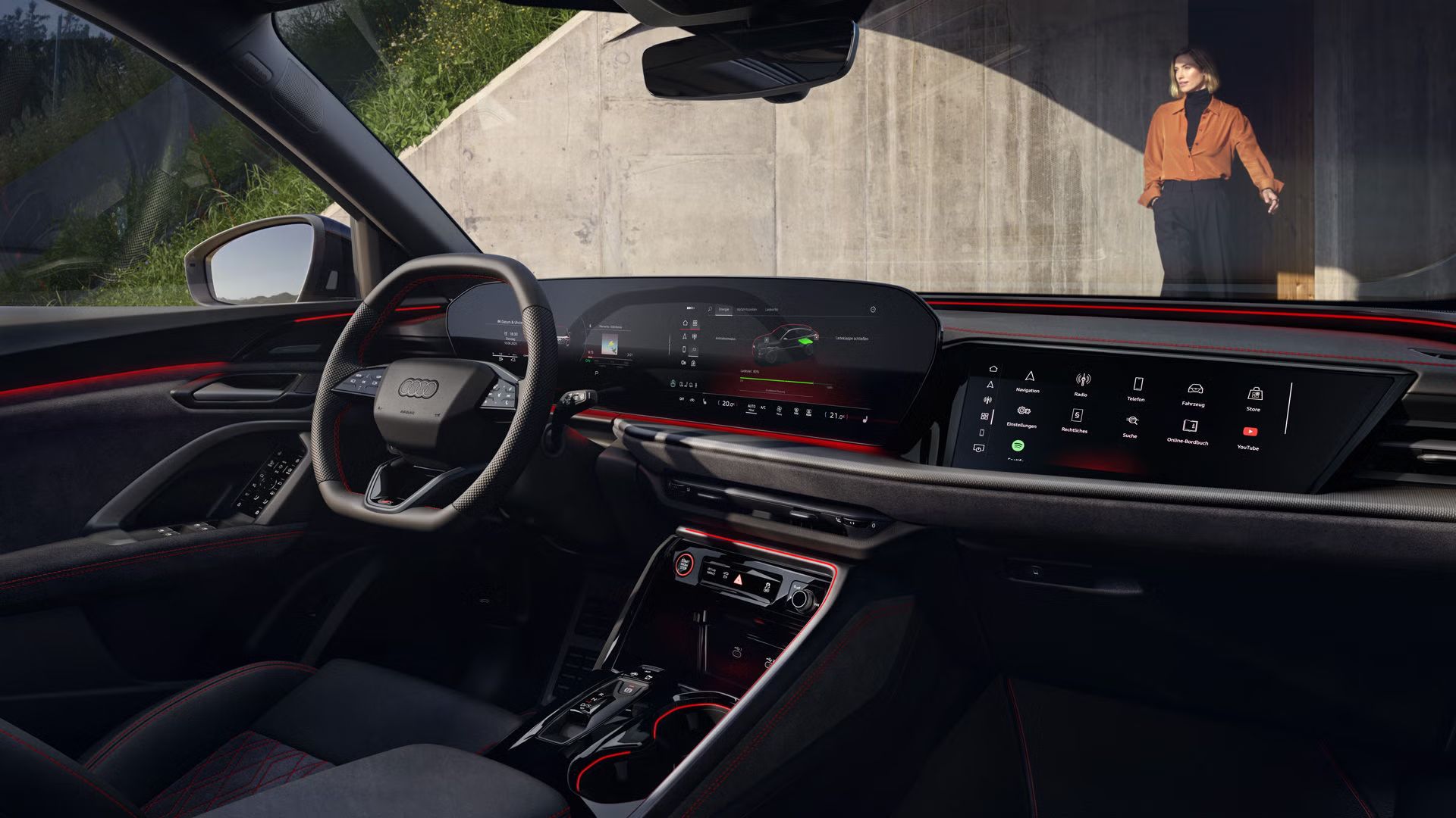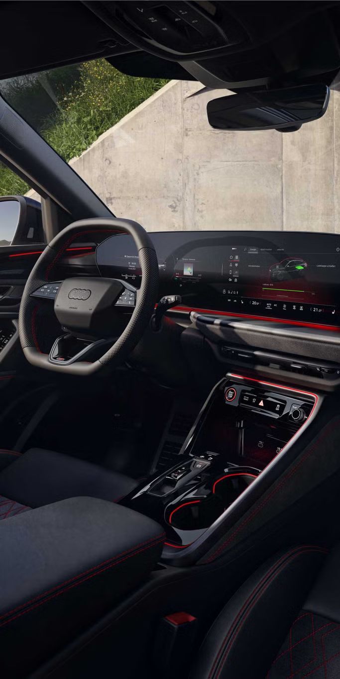 Digitale Bühne im Innenraum: Das geschwungene OLED-Panoramadisplay vereint das Audi virtual cockpit plus mit dem MMI touch-Display.