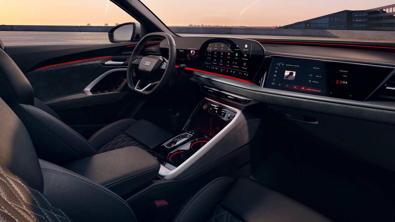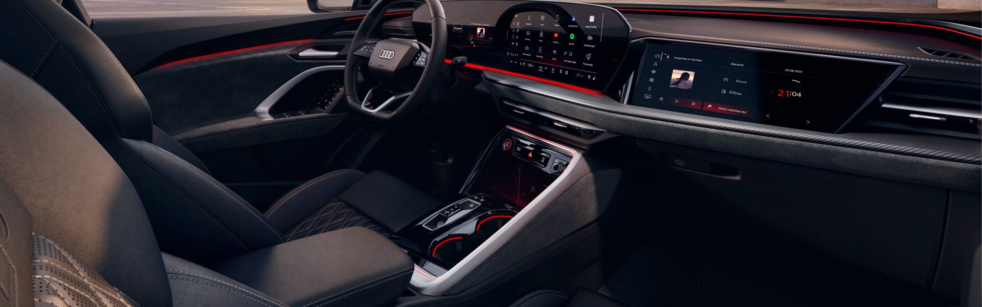 Digitale Bühne im Innenraum: Das geschwungene OLED-Panoramadisplay vereint das Audi virtual cockpit plus mit dem MMI touch-Display.