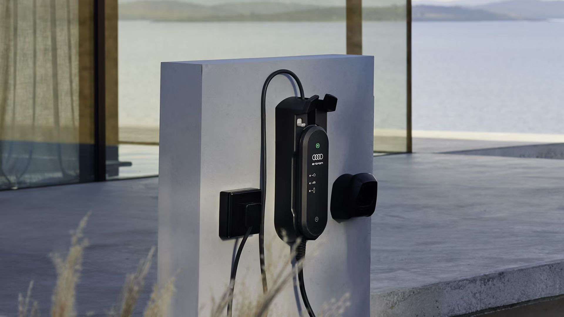 Laden Sie Ihren Audi bequem zu Hause. Das e-tron Ladesystem kompakt5 ist für die Nutzung an Steckdosen konzipiert und liefert eine Ladeleistung von bis zu 11 kW.