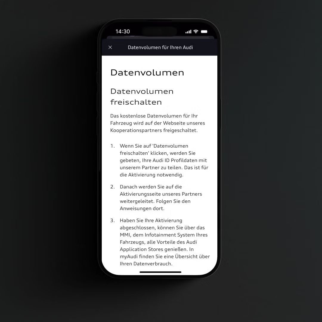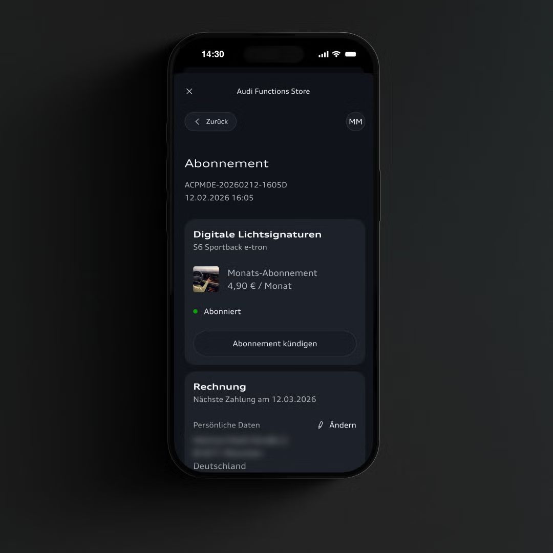 Im Audi Functions Store erhältst du die Möglichkeit, neue Technologien kennenzulernen und zusätzliche Funktionen für eine bestimmte Dauer oder langfristig zu nutzen. Ob Licht, Sound, Klimatisierung, Fahrerassistenz oder Infotainment – du entscheidest, welche zusätzlichen Ausstattungen deinen Alltag bereichern. Erfahre in den Video-Tutorials alle nötigen Schritte, um gewünschte Functions on Demand- und Connect-Lizenzen zu buchen, zu verwalten oder auch zu kündigen.