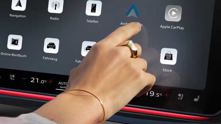 Bring deine Lieblings-Apps in deinen Audi. Nutze den Audi Application Store5, um Apps wie Spotify6, Disney+6 oder YouTube auf das MMI oder auf das MMI Beifahrerdisplay7 zu installieren und zu organisieren.