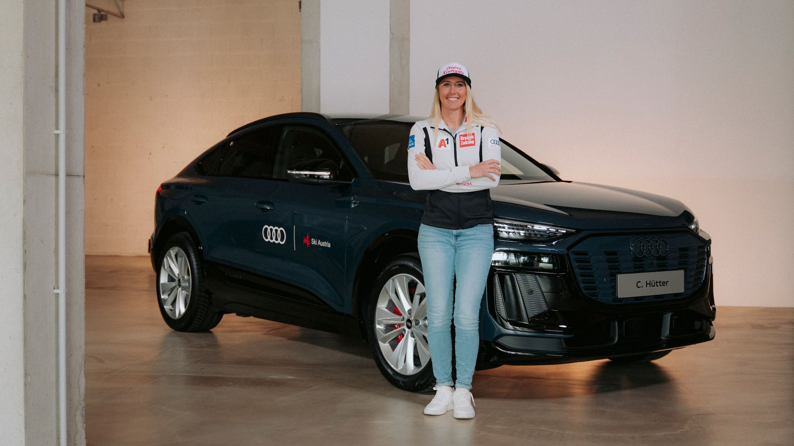 Die Abfahrtsweltcup-Siegerin 2023/2024, die gemeinsam mit Ex-ÖSV-Star Nicole Schmidhofer in einem Podcast hinter die Kulissen der Skisportbühne blickt, kommt angesprochen auf ihr neues Dienstfahrzeug regelrecht ins Schwärmen.