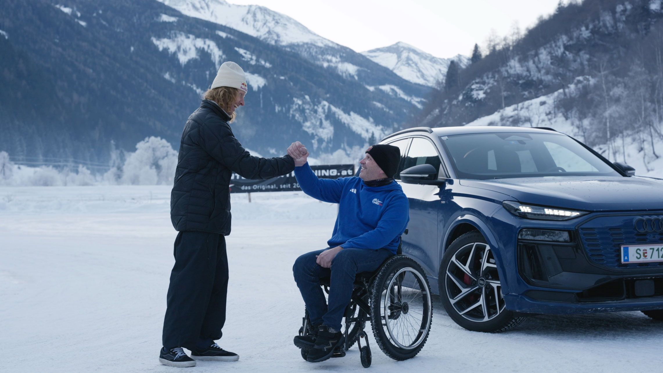 Reini Sampl: Servus und herzlich willkommen auf der Eisstrecke in Muhr im Lungau, wo man das Autofahren im instabilen Zustand erlernt, die Fahrsicherheit perfektioniert und den Spaß dabei nicht zu kurz kommen lässt.