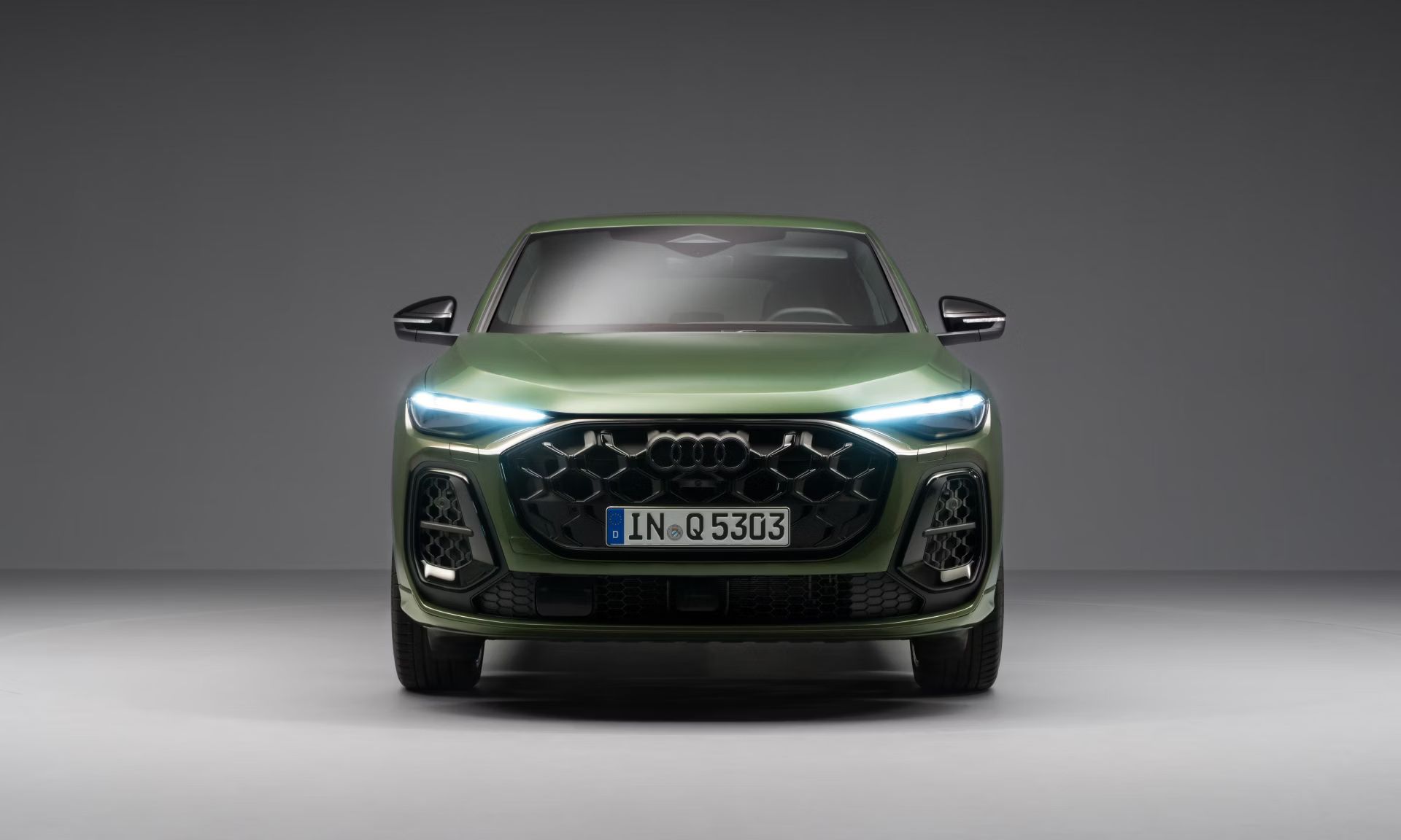 Der charakteristische Audi Singleframe, die spezifischen Stoßfänger sowie die geschärften Scheinwerfer prägen das kraftvolle Erscheinungsbild des neuen Audi Q5 Sportback.