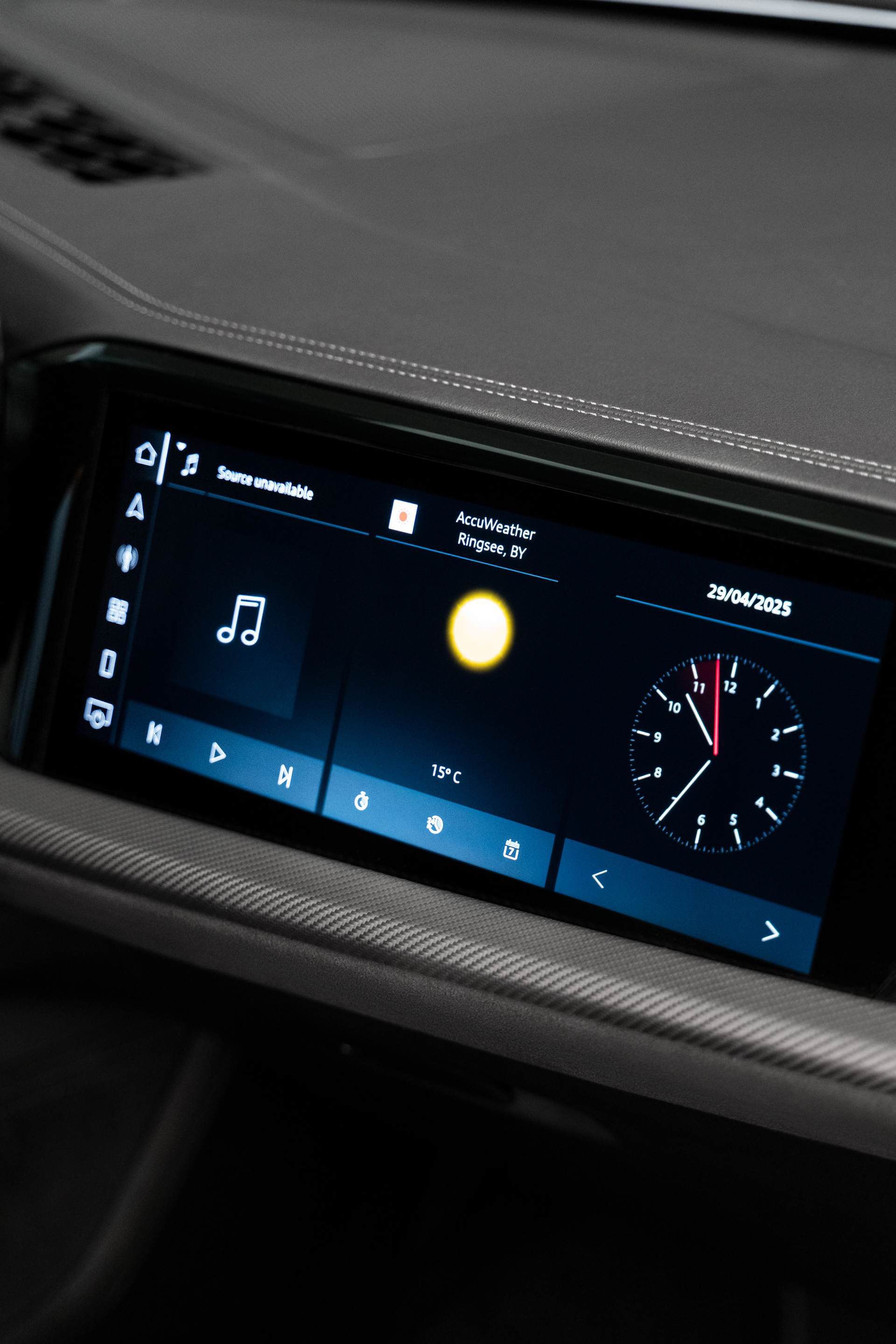 Das Beifahrerdisplay bietet auch dem Fahrenden Mehrwert. Ergänzend zum Curved Display lassen sich auf der Beifahrerseite zum Beispiel Musikquellen, Wetter und Uhrzeit anzeigen.